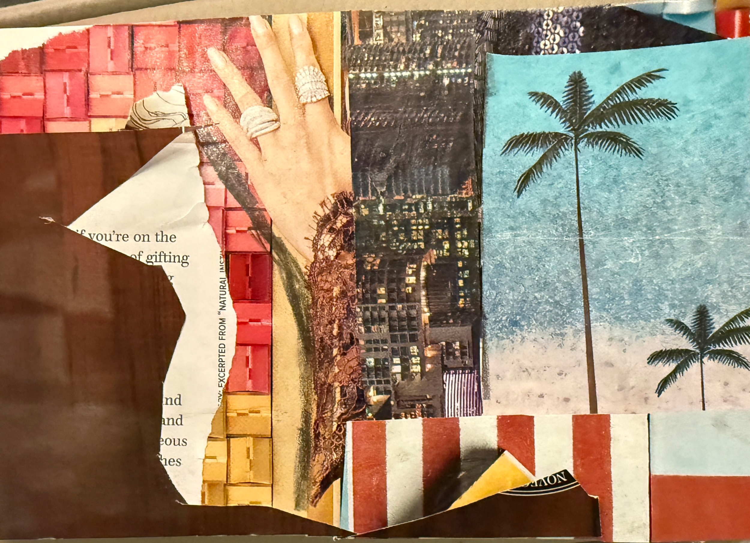 Collage artist Jean Blackwell Font creates postcards as part of a practice that developed from a need to do something with a little free time. One postcard a week, every Monday night starting sometime in 2023.